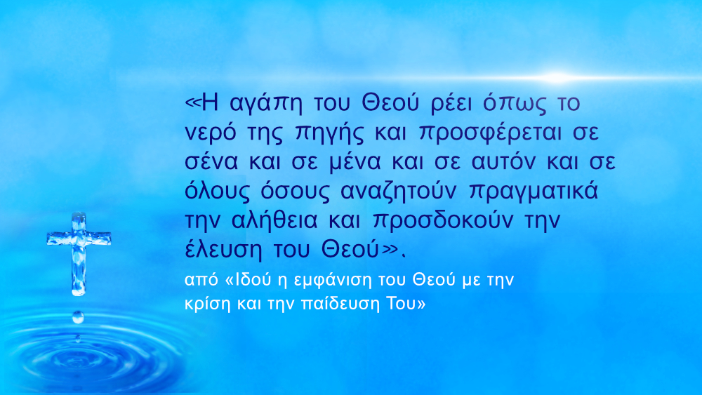Η αγάπη του Θεού ρέει όπως το νερό της πηγής και προσφέρεται σε σένα και σε μένα και σε αυτόν και σε όλους όσους αναζητούν πραγματικά την αλήθεια και προσδοκούν την έλευση του Θεού.